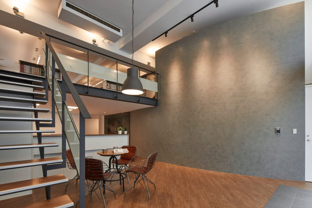 精密機械儀器公司由二代接手後致力轉型,希望將俐落時尚的企業形象體現在辦公室。設計團隊破除老屋採光、收納不均以及預算有限的問題,更以員工的出發點為基準,打造人性化辦公空間。